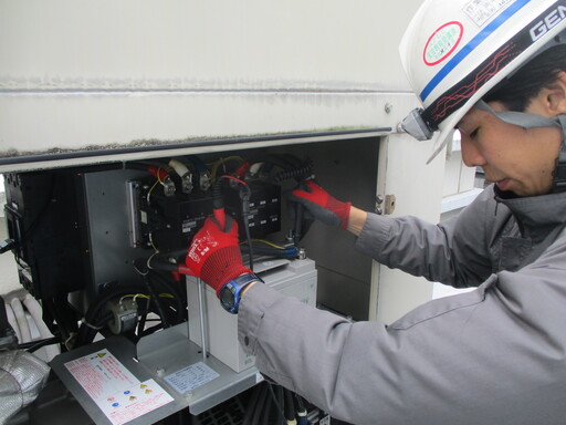 • 自家発電設備の蓄電池取替を実施致しました。発電機の設置場所が屋上にあり、天井裏に入って搬入する経路の為、重量物を持ち上げたりする際、危険が多い現場でした。2人作業にて声を掛け合い、資材を落下させたり、脚立から転落したりしないよう安全に作業を完了することができました。